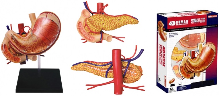 - Mô hình dạ dày trong suốt 4D có thể tách rời thành 9 phần khác nhau, thích hợp cho sử dụng giảng dạy và học tập môn giải phẫu phần giải phẫu dạ dày tụy tại các trường đại học cao đẳng Y.