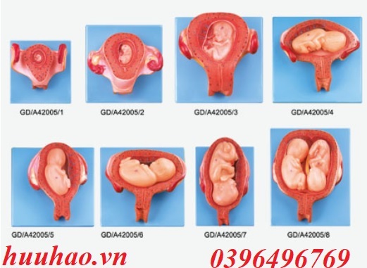 - Mô hình bao gồm 8 phần thể hiện tử cung chứa phôi thai và thai nhi từ tháng thứ nhất đến tháng thứ bảy của thai kỳ.