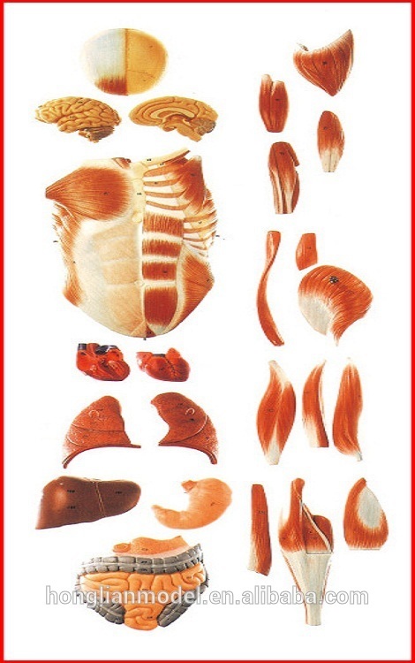 - Mô hình giải phẫu hệ cơ toàn thân GD/A11301/1, GD/A11302/2 bao gồm 27 phần, chẳng hạn như cơ ngực và bụng, cơ bắp chi trên và dưới, hộp sọ, não và nội tạng.