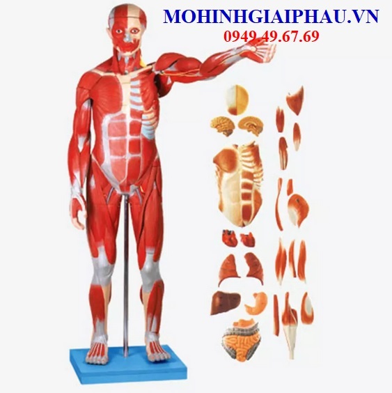 - Mô hình giải phẫu hệ cơ toàn thân GD/A11301/1, GD/A11302/2 cho thấy cấu trúc của đầu, cổ, thân, chi trên và dưới, cơ, niêm mạc, dây chằng, nội tạng, mạch máu, não, vv.