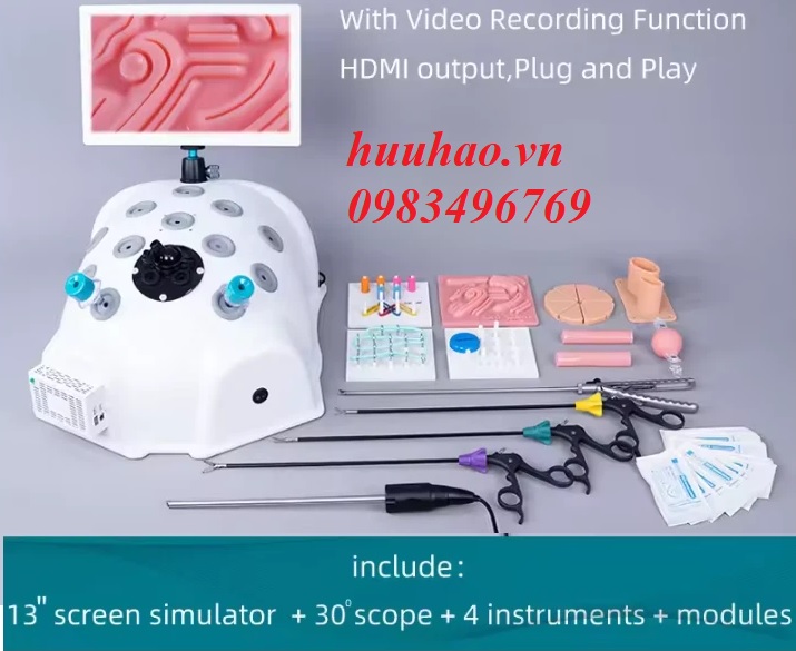 Mô hình huấn luyện phẫu thuật nội soi, mô phỏng nội soi, máy tập nội soi với máy ghi hình để luyện tập kỹ năng khâu