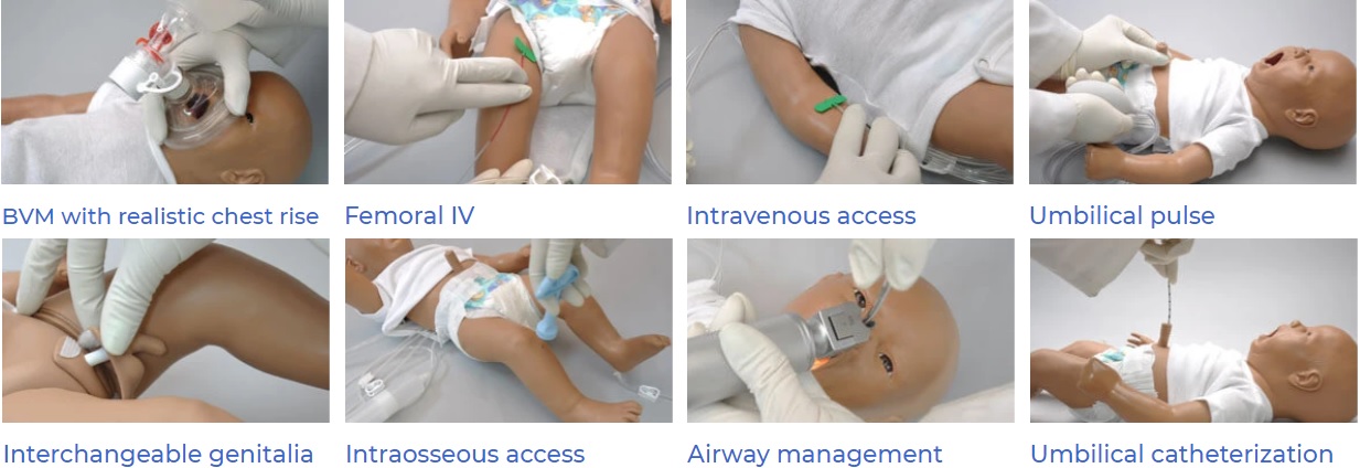 - Bộ mô phỏng PEDI® cho trẻ sơ sinh thực tế này để hỗ trợ cuộc sống nâng cao là điều bắt buộc phải có cho chương trình đào tạo Hồi sức trẻ sơ sinh và trẻ em. Các thiết bị mô phỏng PEDI® bao gồm đường thở có thể đặt được và một cánh tay huấn luyện tiêm, một chân tiêm trong cơ thể và mô phỏng động mạch, tĩnh mạch thích hợp. Trình mô phỏng sơ sinh này là rất cần thiết cho một chương trình đào tạo được trang bị tốt nhất.