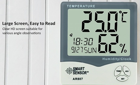 - Đồng Hồ Đo Độ Ẩm Nhiệt Độ Smart Sensor AR807 là thiết bị nhỏ gọn, tiện dụng giúp bạn đo nhiệt độ và độ ẩm không khí, môi trường làm việc trong nhà. Máy cũng hỗ trợ nhiều tính năng và phù hợp đặt trong phòng.