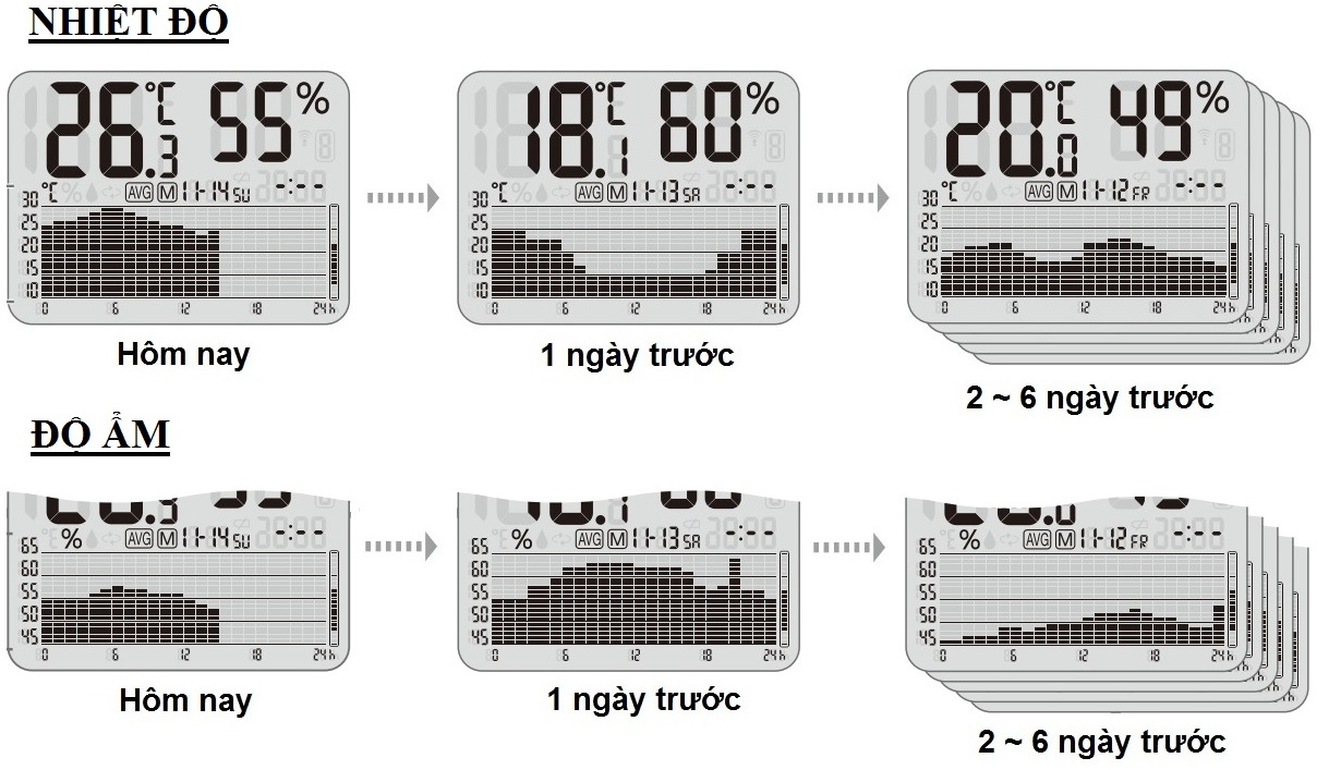 Nhiệt ẩm kế điện tử TT-580, với đồ thị nhiệt độ / độ ẩm, có ghi biểu đồ nhiệt độ độ ẩm trong ngày