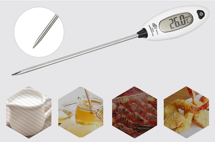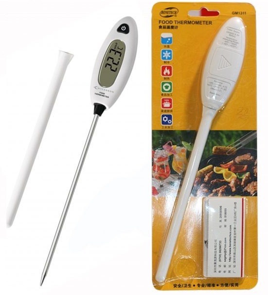 - Nhiệt kế thực phẩm GM1311 là máy đo nhiệt độ thực phẩm dạng bút với đầu dò thép không gỉ có dải đo rộng. GM1311 được sử dụng nhiều để kiểm soát nhiệt độ thực phẩm trong quá trình nấu hoặc bếp nướng. Ngoài ra GM1311 còn được sử dụng trong một số lĩnh vực khác như chế biến thực phẩm đông lạnh, đo nhiệt độ thực phẩm trong quá trình đóng gói bao bì nhựa, xốp.