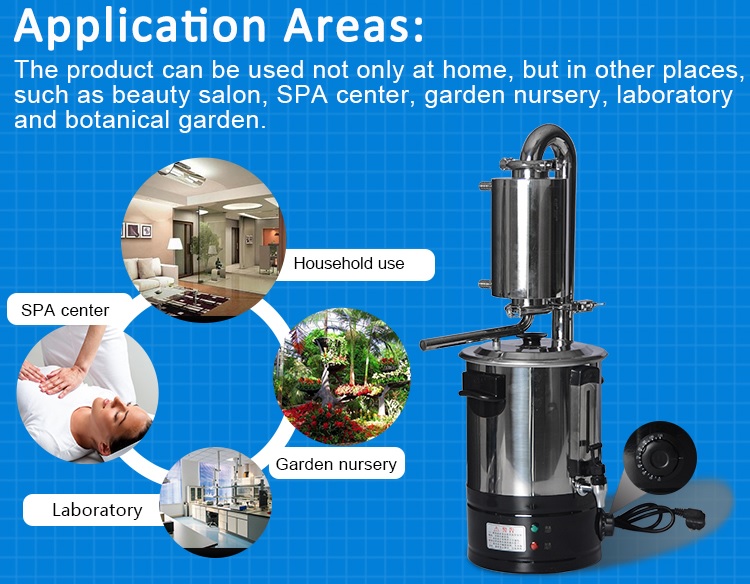 - Ứng dụng: Nồi chưng cất tinh dầu 10, 21,32, 55 lit cắm điện trực tiếp tiện dụng dùng trong gia đình để chưng cất tinh dầu các loại: sả, chanh, bưởi, tràm, quế, chưng cất nước hoa hồng, hydrosol, rượu, chưng cất tinh dầu....; chưng cất các loại nước cất: hoa hồng, trầu không, tía tô, các loại thảo dược....ứng dụng rất nhiều trong đời sống làm đẹp, chăm sóc sức khỏe, nghiên cứu, y tế...