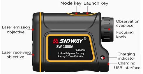 - Ống nhòm đo khoảng cách SW-1000A tất cả tính toán được thao tác nhanh chóng trực tiếp thông qua các phím, màn hình của máy.