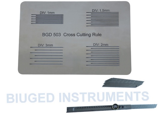 - Thước đo độ bám dính BGD503 hãng Biuged được thiết kế để kiểm tra độ bám dính của các mẫu vật liệu phủ có độ dày nhỏ hơn 250um.